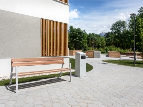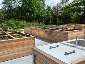 - Stanovalcem je na voljo urejen park s klopmi in 60 visokih zeliščnih gred (za vsako stanovanje ena).